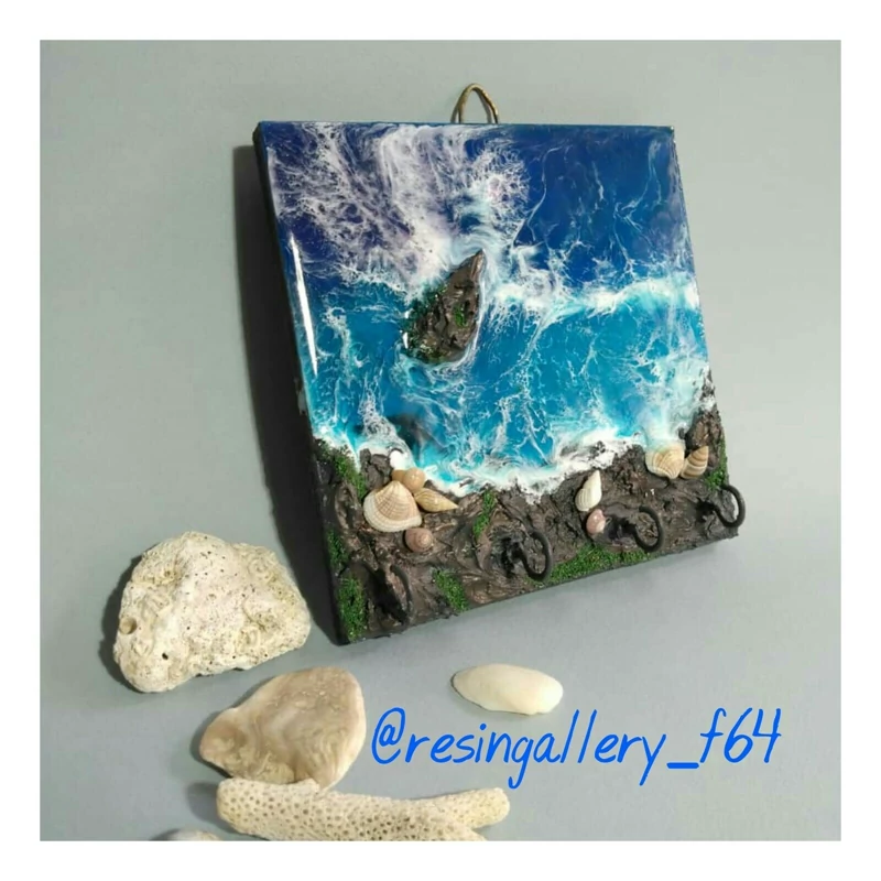 جاکلیدی رزینی طرح دریا ابعاد 15 در 15 سانت فوق العاده زیبا بیس چوب